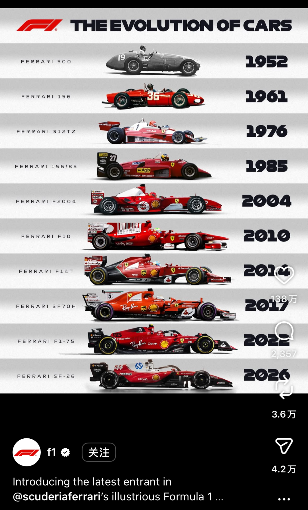 2010 年以后,随着社交媒体的兴起,F1 的传播方式也发生变化,短视频、高频实时互动、围场花絮等内容开始在年轻受众中获得流量,使得这项曾被视为“贵族运动”的赛车赛事越来越贴近普通观众。